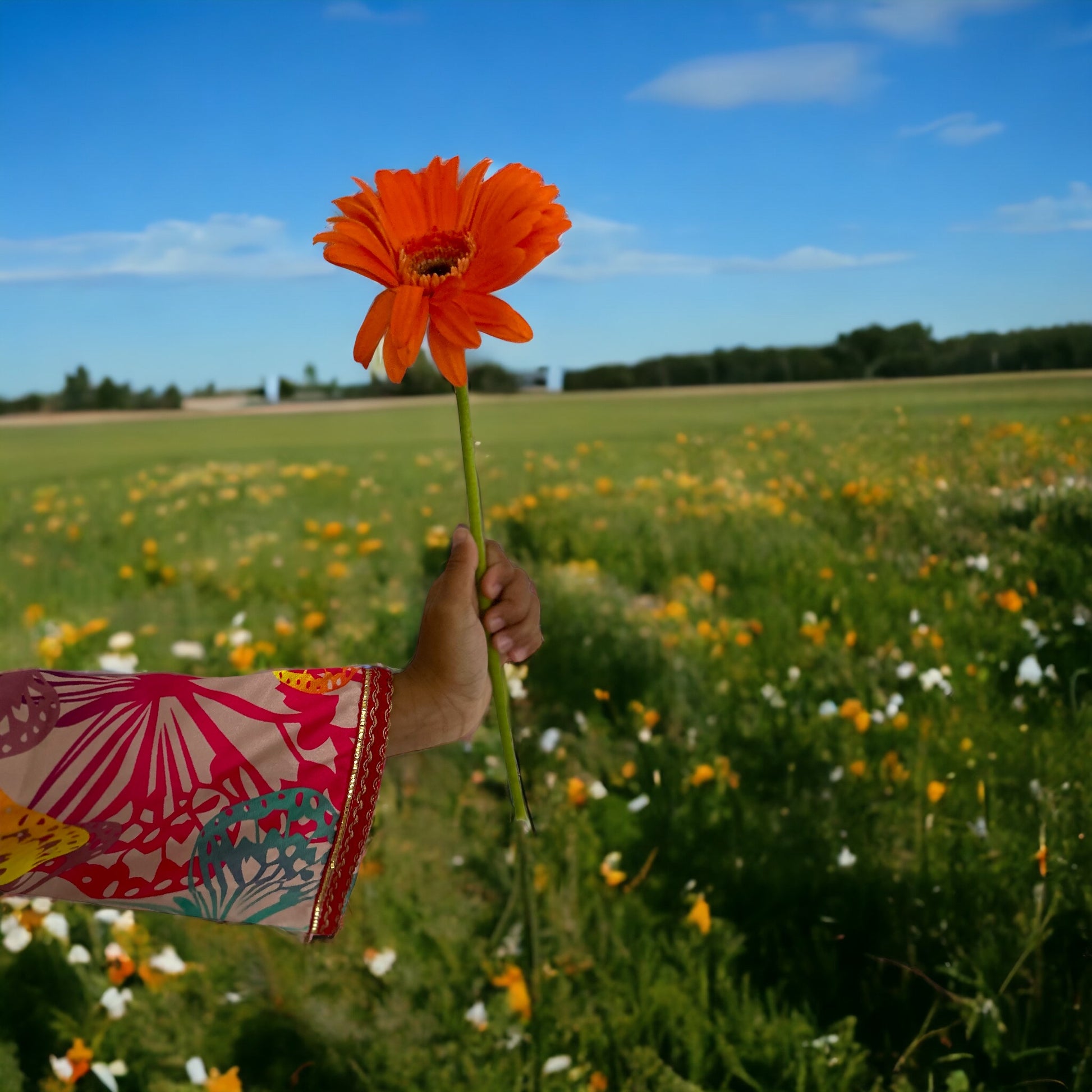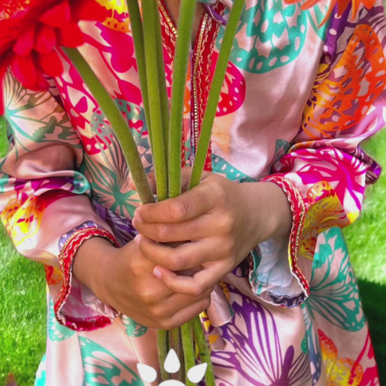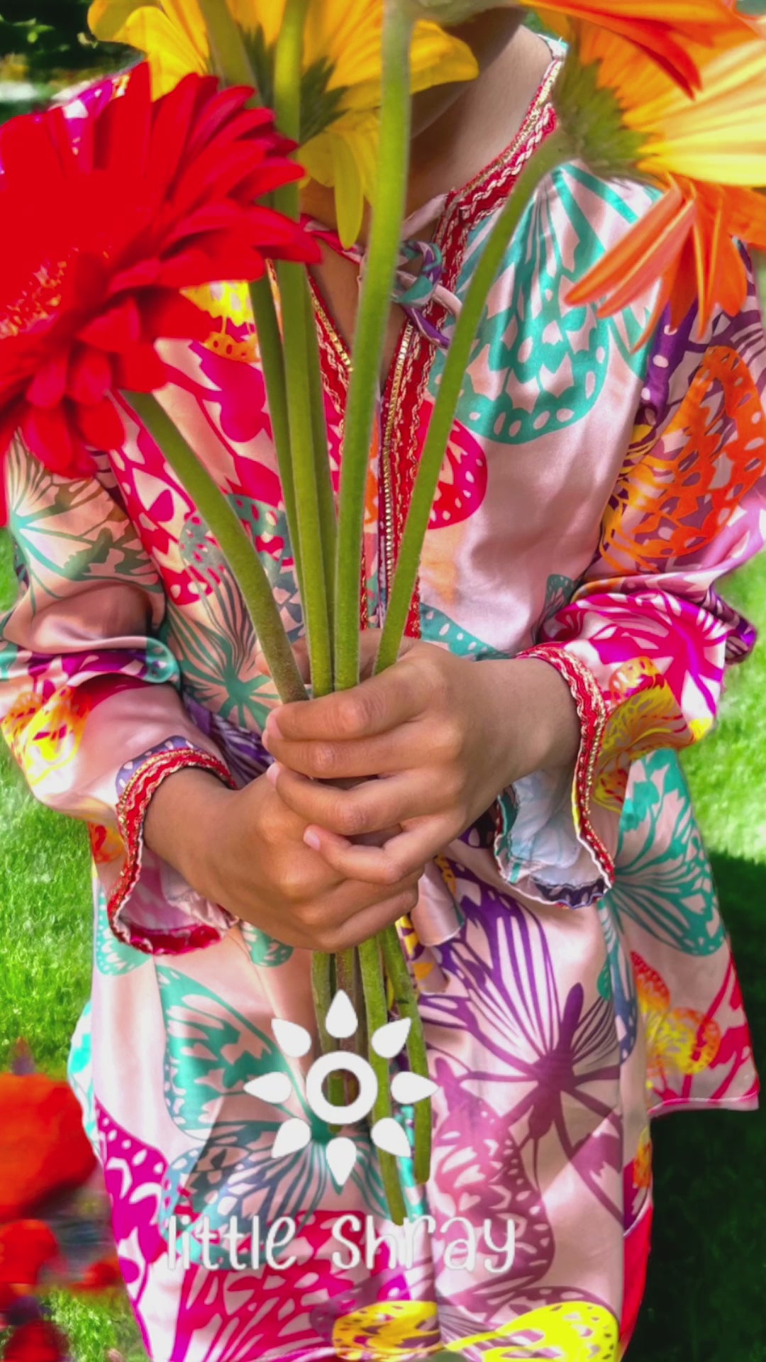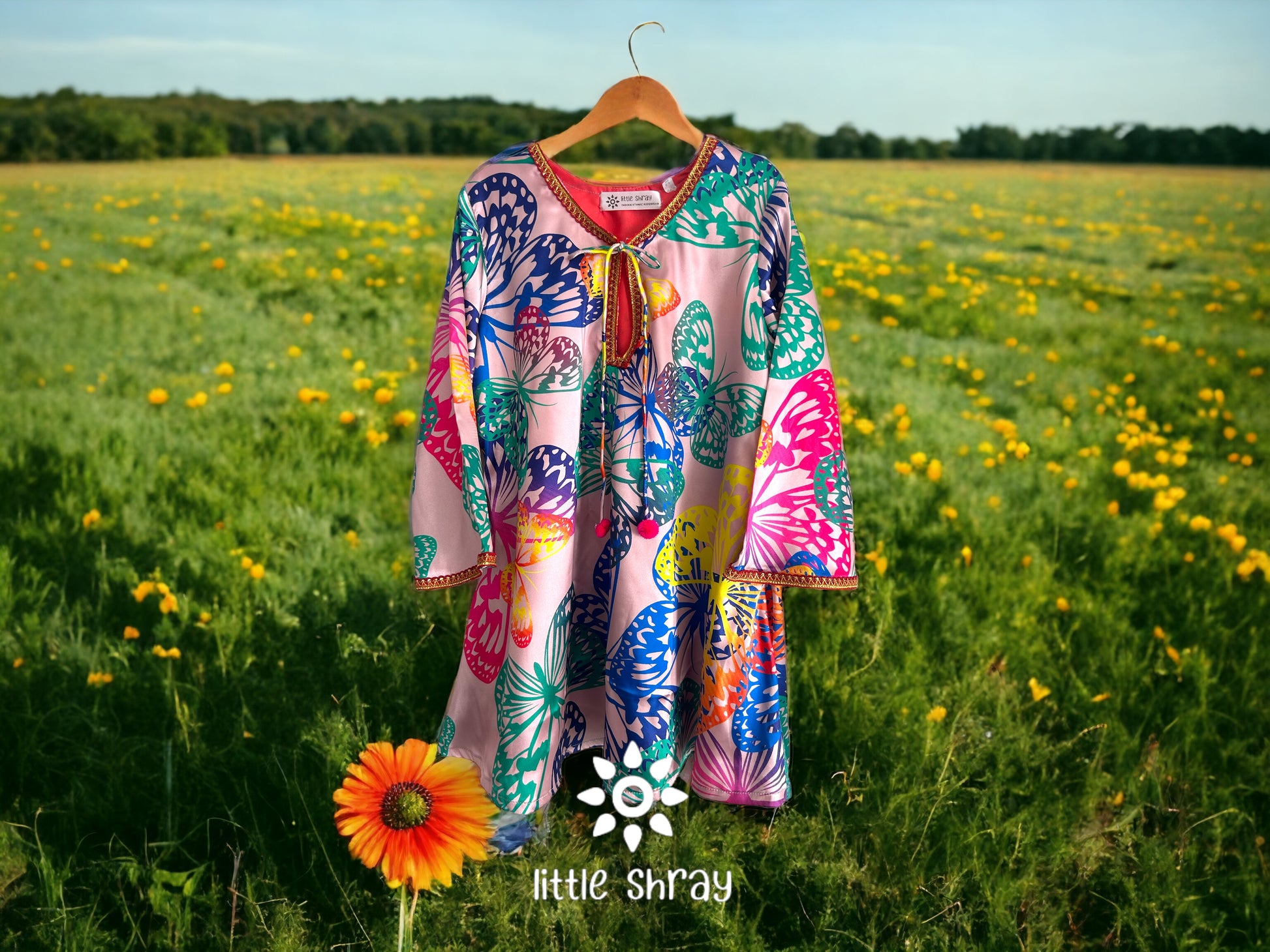 A lovely ensemble of neon butterflies with red Zari lace, this kurti is cute and stylish!